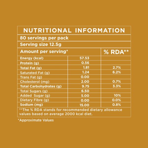 • Ingredients: Non-Dairy Creamer [Glucose syrup, Palm oil, Sodium Caseinate, Stabilizer (E 340), Emulsifier (E 471), Anti-caking agent (E 551)], Sugar, Dairy Whitener (Milk Solids, Sugar & Maltodextrin), Instant Coffee- Chicory Mix (8.2%), Raising Agent (E 500 (ii)), Artificial Vanilla Flavour & Nature Identical Coffee Flavour.