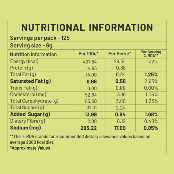 Serving per pack 125 Serving size 6g