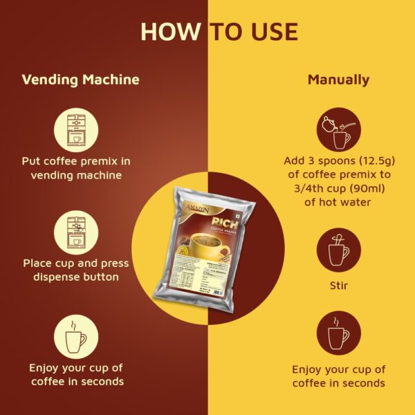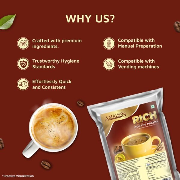 AMAZON Rich 3-in-1 Coffee Premix – 1kg Pack | Suitable for Vending Machines and Manual Use- Just Add Hot Water
