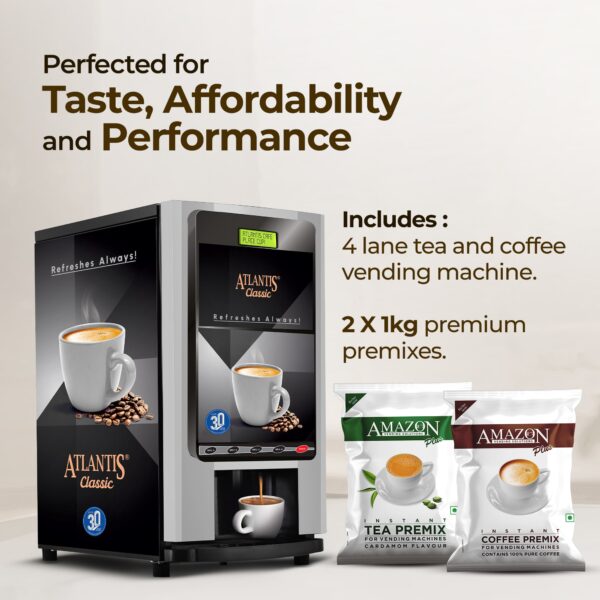 ATLANTIS CLASSIC 4 Lane Tea & Coffee Vending Machine – 3 Ltrs hot Tank