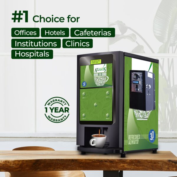 ATLANTIS NEO COIN OPERATED 4-Lane Tea Coffee Vending Machine – Dedicated Hot Water