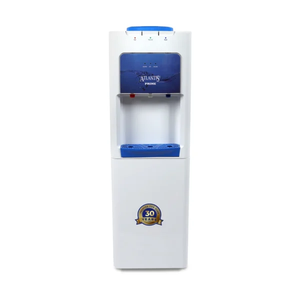 With its sleek design Atlantis Prime Floor Standing Water dispenser adds a touch of sophistication to your space. It offers three options normal, hot and cold water - catering to diverse drink preferences. It has top mounted buttons for water dispensing which eliminates the need for bending. This type of dispenser is perfect for use in households, offices, or other commercial settings where clean and safe drinking water is necessary. It provides a convenient and user-friendly way to get hot or cold water instantly without having to wait for water to heat on stove or chill in a refrigerator.